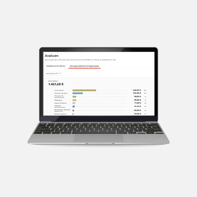 Οι δαπάνες σας που χτίζουν αφορολόγητο εμφανίζονται σε έως 11 κατηγορίες, όπως σουπερμάρκετ, λογαριασμοί, ένδυση κ.ά. Βλέπετε το σύνολο ανά μήνα και ανά κατηγορία. Έτσι ελέγχετε πιο εύκολα τα έξοδά σας.